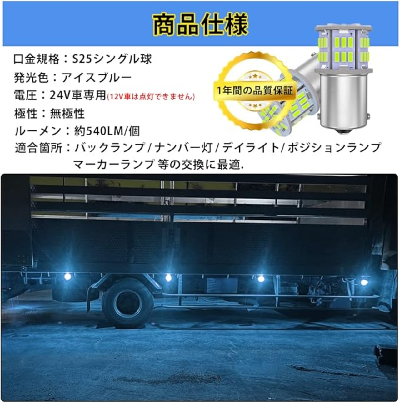 【24V車専用】S25 LEDシングル アイスブルー 爆光 G18 BA15s P21W 54連 3014SMD トラック デコトラ ダンプ バス 大型車用 バルブ バックランプ マーカー球 ターンライト ブレーキランプ サイドフラッシャーランプ 高輝度 汎用 (4個セット) | etshop