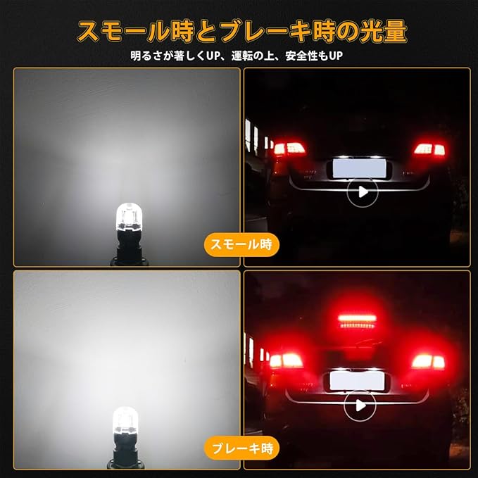 【高輝度&無極性設計】S25 led ダブル ホワイト.高拡散15LED 3030SMD、すみずみまで均一な光を照射。360 全方位照射できます。 T20 LED テールランプ/ブレーキランプ/バックランプ 全面的に導電でき、明るさ1500LM、純正バルブに比べて300% 明るさUPします!極の明るさが実現します。極性フリーで、取付は簡単!原箇所のまま差し込むだけで取付ます。