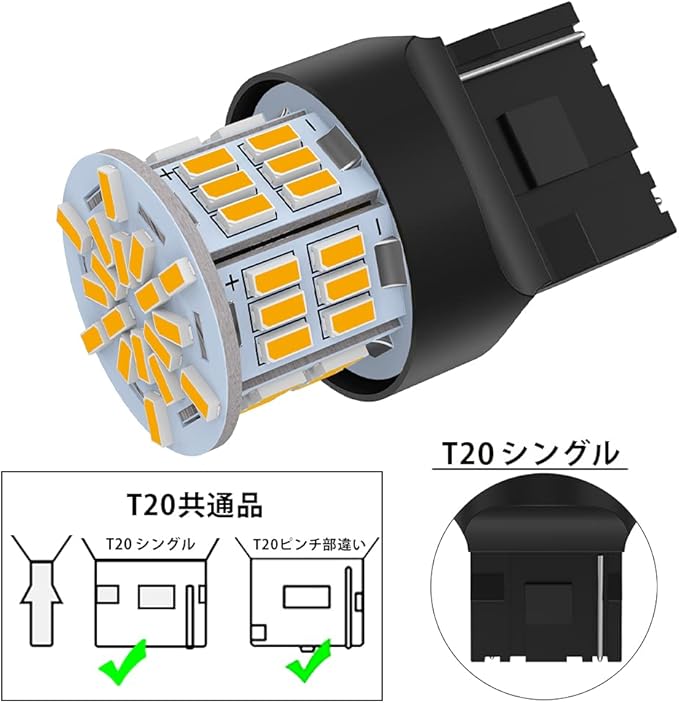 【形状】T20シングル 極性なし、12V-24V専用,1080LM/2個 54LED 3014SMD アンバー 。