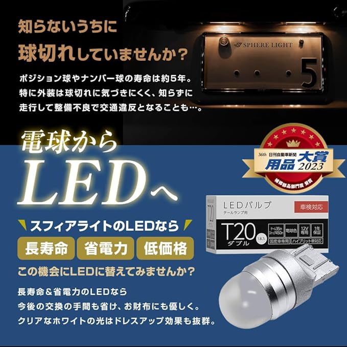 【電球からLEDへ】スフィアライトから補修用バルブが多様な形状がLEDとして登場! シリーズ化でポジション・ライセンス・ルームランプ・バックランプ・テールランプなど色々な箇所をリーズナブルにLED化できます! 光の強さ・明るさも発光範囲も全てがパワーアップし、クルマ時間を快適にします。