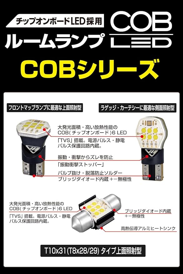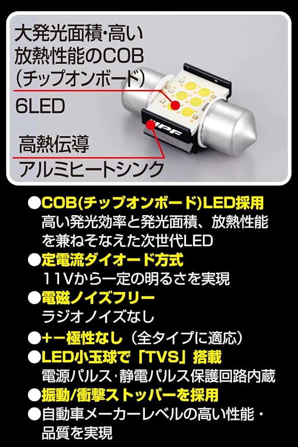 【Amazon.co.jp 限定】M's Basic by IPF ルームランプ LED 車用 T10 31 T8 28 100lm 6000K ホワイト 12V用 1個入 COB 面発光 AMZ-RB002 | etshop