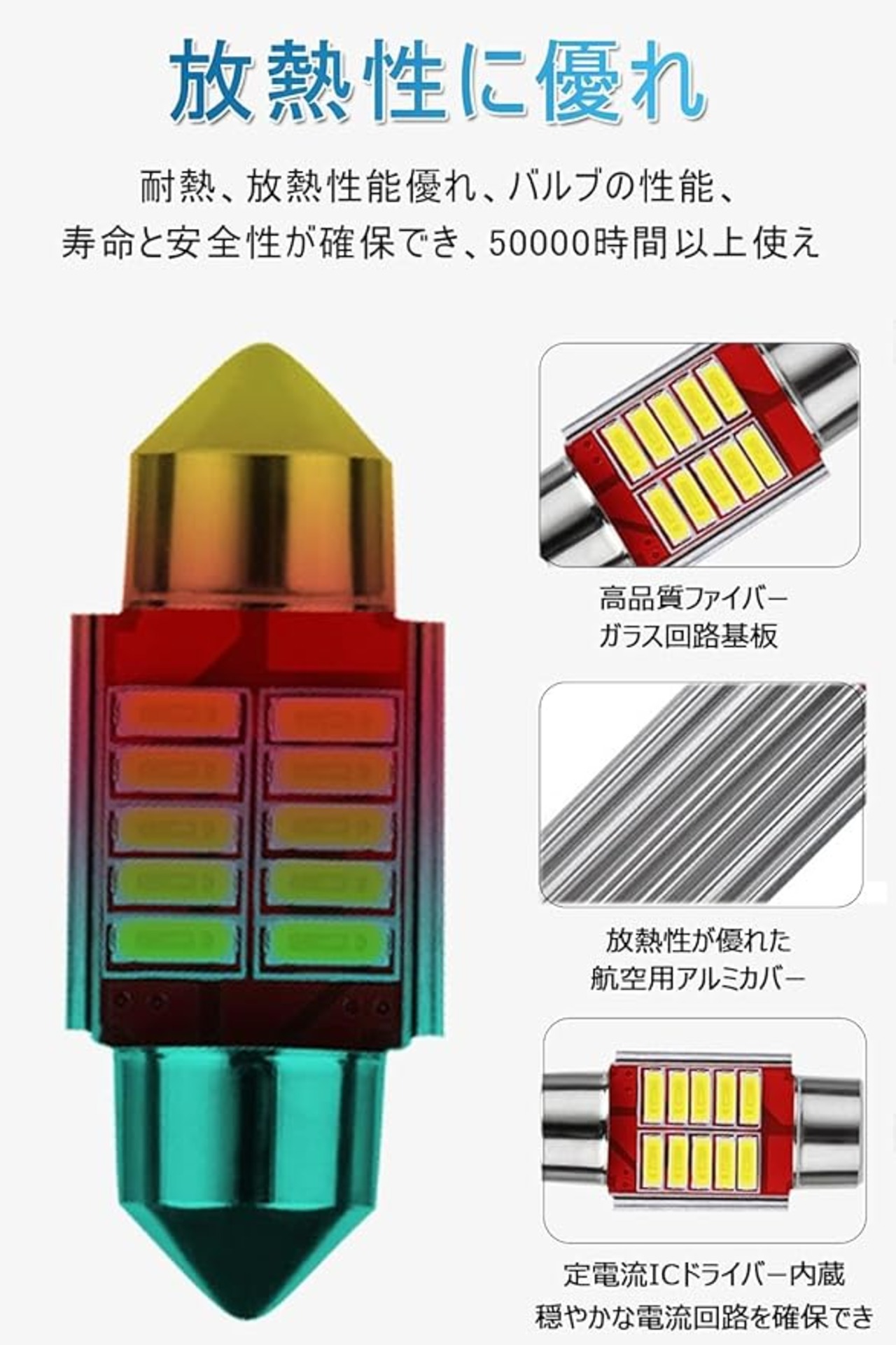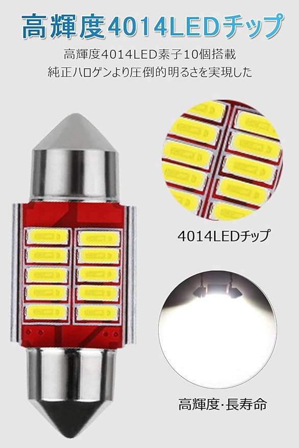 T10 31mm LED ルームランプ ホワイト キャンセラー内蔵 T10 31mm 10SMD LEDトランク ルーム バルブ マップランプ 室内灯 車内灯 ラゲッジランプ ナンバー灯 汎用 LEDバルブ 12V 6500K 車用 無極性 エラーフリー 両口金タイプ LEDライト 50000時間長寿命
