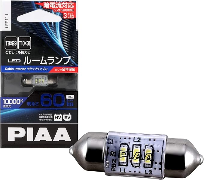 PIAA(ピア) 車用 ランプ&バルブ ルーム LED ハイケルビンルームLEDバルブ 10000K 60lm T10x31/T8x29共用 12V 0.6W LED Ra70/全方向拡散 1個入 LER111 | etshop