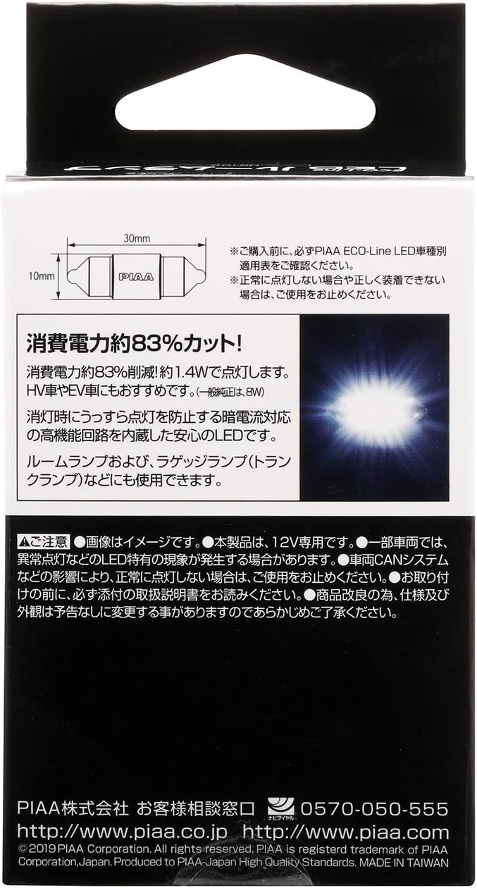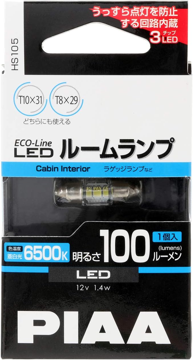 PIAA(ピア) 車用 ランプ&バルブ ルーム/ラゲッジランプ用 LEDバルブ T10x31 / T8x29 6500K 100lm ECO-Lineシリーズ_車検対応 1個入 12V/1.4W 暗電流対応 HS105 | etshop