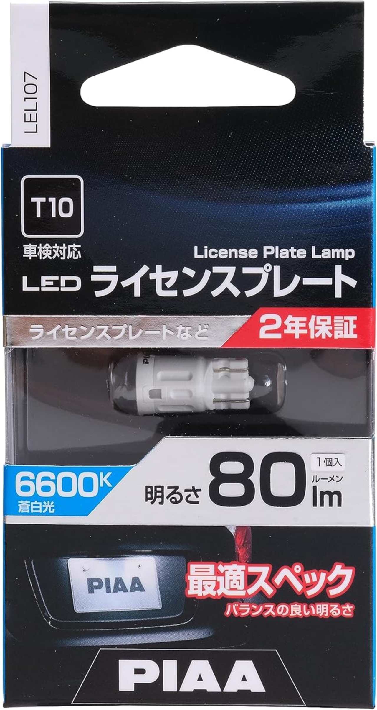 PIAA(ピア) ライセンスプレート用バルブ LED 6600K 蒼白光 12V 1.0W 80lm T10 2年保証 ハイブリット車/電気自動車対応 車検対応 1個入 LEL107 | etshop
