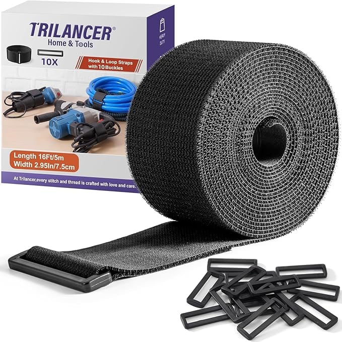 Trilancer 5m x 7.5cm 強力マジック結束バンド 10個のバックル付き – 調節可能、必要な長さにカット可能、再利用可能なストラップで、ケーブル、ホース、パイプ、自転車、荷物、キャンプ用品、パネル、フェンスなどをしっかり固定できます | etshop