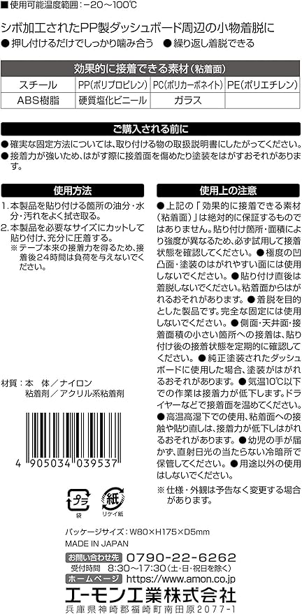 使用可能温度範囲:-20~100℃(夏場の車内温度は80度を超える場合があります)