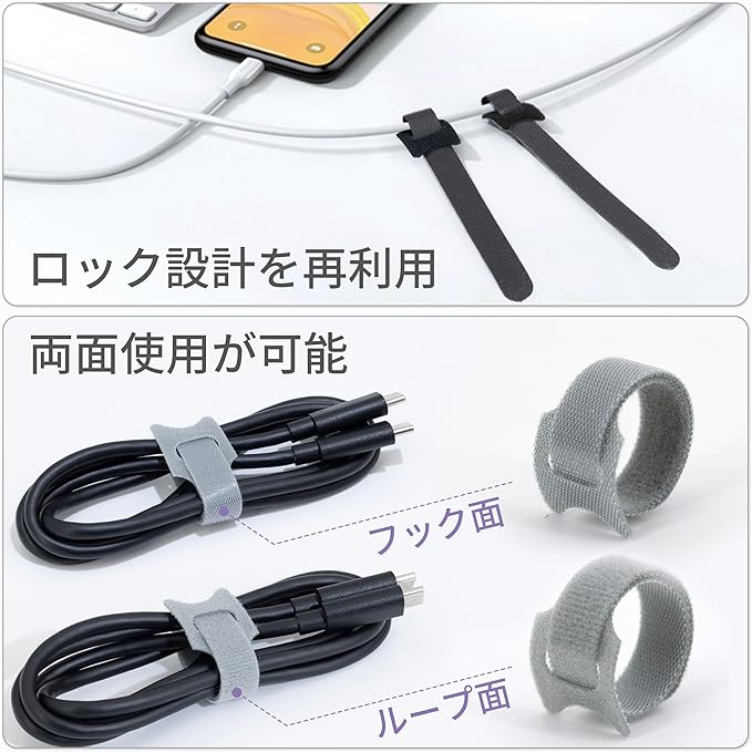【50本・繰り返し使用可能】結束バンドは枚数が多いだけでなく、耐久性にも優れています。素材は上質なナイロンで、5000回に曲げて、靭性は同じままです。フック面の変形はないため、何度も繰り返し使用可能です