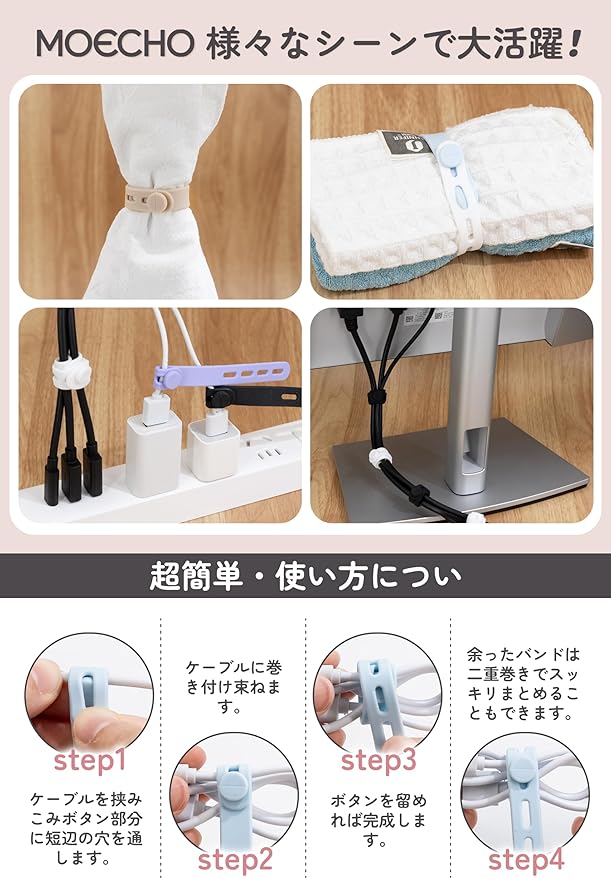 【様々なシーンで大活躍】様々なシーンで活躍します。◎コンピュータケーブル ◎USBケーブル ◎携帯電話 ◎イヤホンケーブル ◎ガーデニング ◎釣竿 ◎DIY ◎植物固定