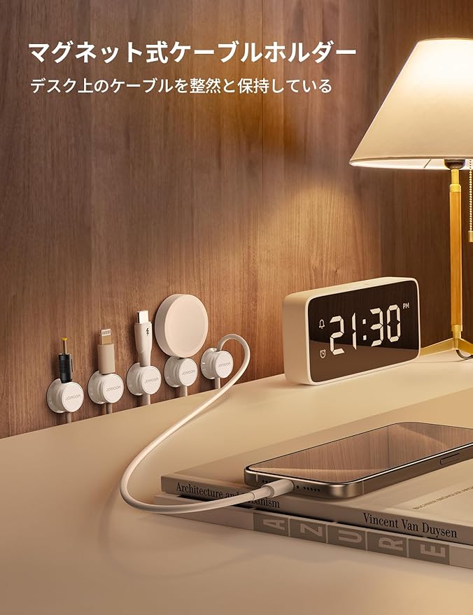 【6個セット マグネット式 】ケーブルホルダー JOYROOM ケーブルクリップ 配線止め 配線整理 ケーブルスムーズ調整可能 デスク周り コードクリップ コードホルダー 貼り付け 強力粘着 USB配線収納 卓上 デスク 机 壁 車 ナイトテーブル すっきり USB-Cケーブル固定 type-c マウスライン キーボードライン 電源コード ヘッドフォンケーブル オーディオラインなどに対応 ホワイト | etshop