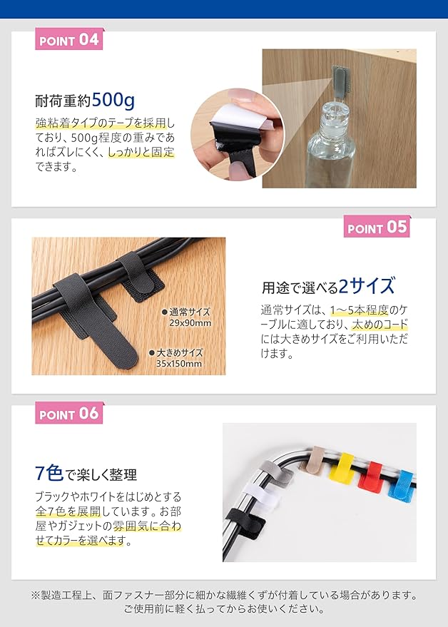 【マジックテープ式・複数本のケーブルも自在対応】マジックテープ仕様で、ケーブルの取り外しや再固定が簡単にできます。ループのサイズも自由に調整できるため、細いケーブルから複数本の整理にも対応できます。2サイズ展開で、用途に応じた使い分けも可能です