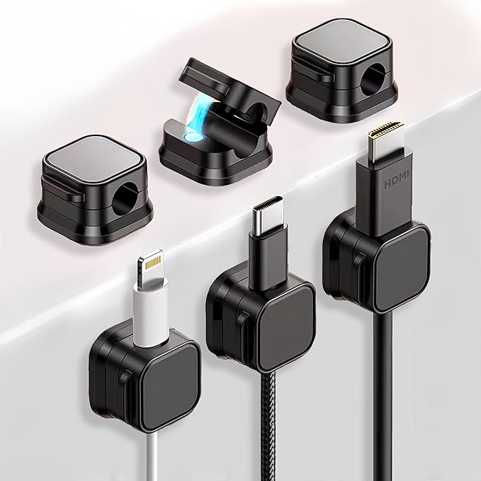 【幅広い用途】この6個セットのマグネットケーブルクリップは、様々な使用ニーズをサポートします。直径6.8mm以内のデータケーブル、イヤホンケーブル、マウスケーブル、オーディオケーブル、LANケーブルなど、幅広いケーブルに対応可能です。複数のケーブルを効率的に管理し、混乱しがちな配線エリアを整然と保つことができます。