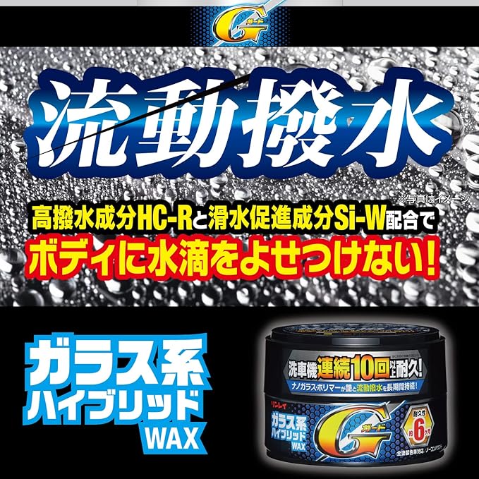 ●ガラス系成分(ナノガラスパウダー)とWAXのハイブリッド効果で6ヶ月以上の耐久性を実現、洗車機連続10回以上の撥水性を持続。