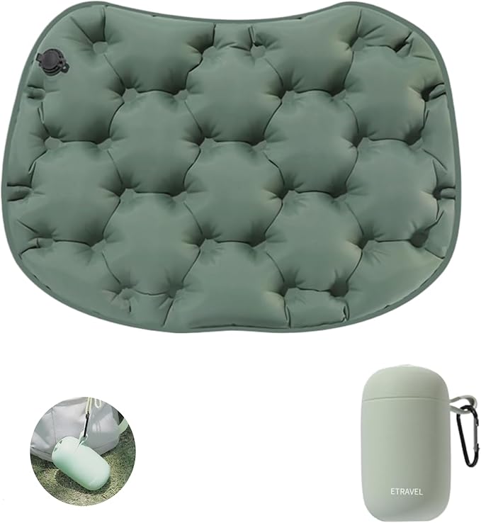 JYSFOVRLV【ポケット エアークッション 3in1 エアポンプと登山カラビナ付き】お尻 クッション お尻がふわっ!レジャーシート 厚手 一人用 エアー 座布団 飛行機 夜行バス グリーン