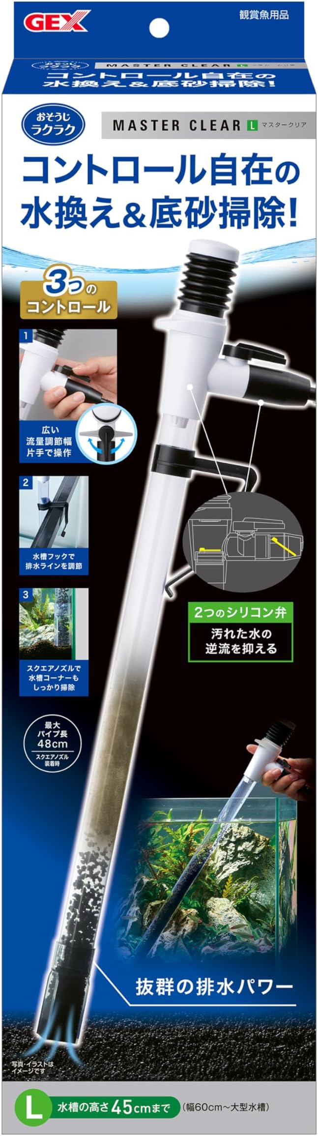 GEX おそうじラクラク マスタークリアL コントロール自在 水換え&底砂掃除 3つのコントロール 水槽の高さ45cmまで 幅60cm~大型水槽 ポンプ 流量調節 排水 クリーナー メンテナンス | etshop