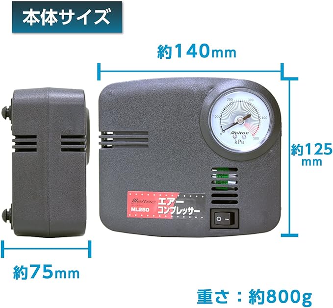 ヒューズ容量 : 10Aミニガラス管 (電源プラグ内)・メーター表示 : 0~500kPa