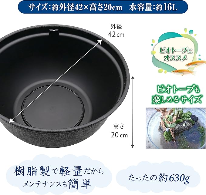 ●水槽サイズ:約外径42.0 高さ20.0cm ●水容量:約16L ●材質:PP