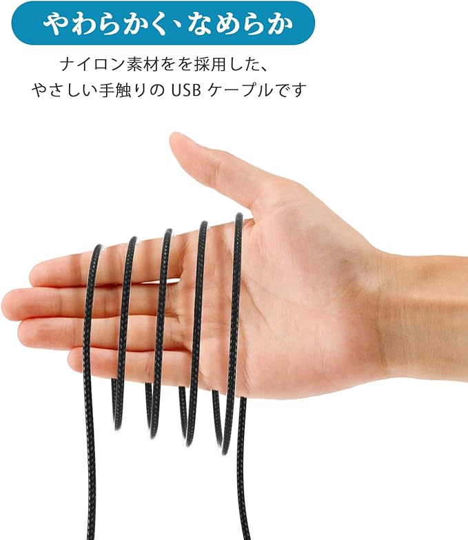 【優れた高耐久性】10000回以上の折り曲げに耐えうるまでに強化され、圧倒的な持続力を持ちます。二重に編み込まれた高耐久ナイロンにより、絡みにくい、取り回しやすい、機能性とデザイン性を両立しました。