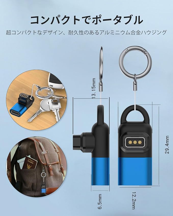 【便利性】軽量、取り外し可能、アウトドアや激しい運動の場合ではバッグやリュックなどに引っ掛けて可能です。不意の紛失や落下の心配を軽減でき、充電変換アダプターを使用し、Type-C充電ケーブルだけで、ノートパソコン、ノートブック、壁の充電器、または車の充電器に接続し、いつでもどこでも充電でき、使いやすいです。