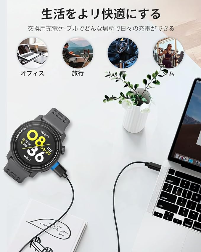 【対応機種】COROS PACE 3 / PACE 2 / APEX/APEX Pro/APEX 42 / APEX 2 / VERTIX/VERTIX 2 に対応できるチャージャーケーブルとなります