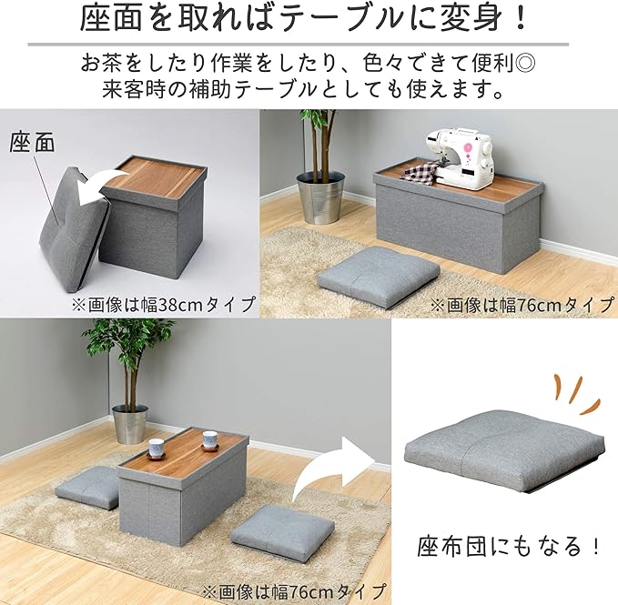 山善(YAMAZEN) 収納スツール テーブル付き 座面が座布団にもなる 折りたためる オットマン 収納ボックス 椅子幅76 奥行38 高さ44cm かんたん組立 ライトグレー JLS-76Z(LGY) | etshop