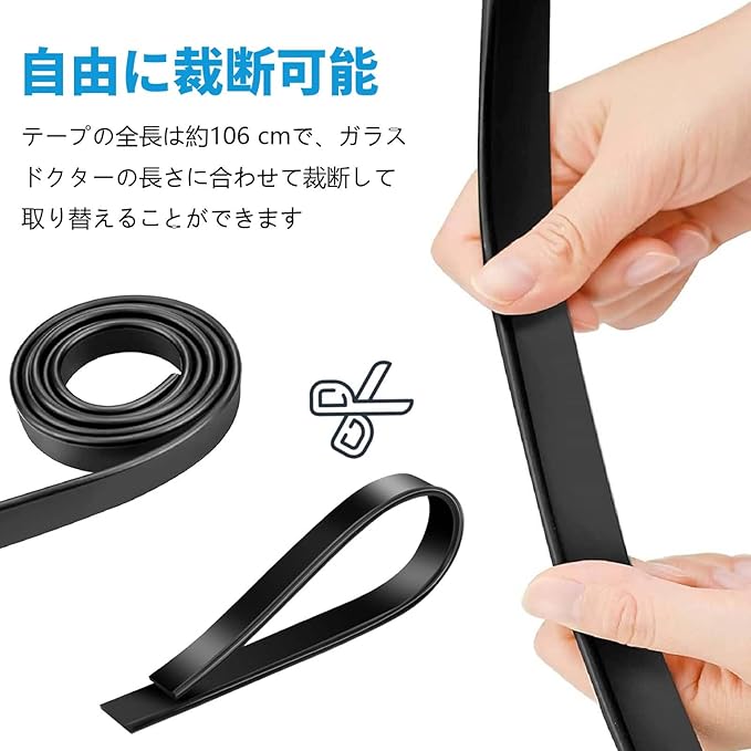 【取り付け簡単】掻き取り用ゴムストリップはスキージーのサイズにカットでき、取り付け時間が短く、操作が簡単です。 ガラスをより良く削り、傷を残さずに削り取る。