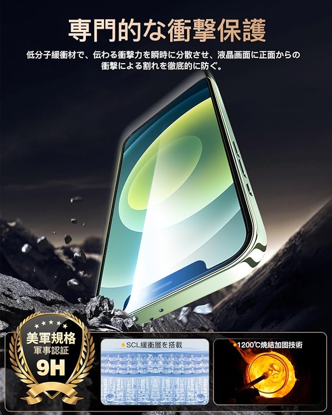 【9H硬度 飛散防止】スマホフィルムとレンズ保護フィルムはすべて旭硝子で作られており、スマホ保護フィルムの中で高レベルの9H硬度に達しています。手にフィットして持ちやすく滑りにくいので落ちにくいです。万が一落ちてもフィルムが衝撃を吸収してくれるので、スクリーンの損傷を最低限まで抑えられます。また、特殊な飛散防止設計により、ガラスが割れても飛散しないため。