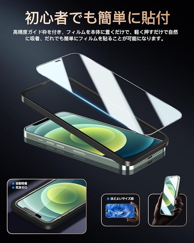 【品質保証】こちらのiPhone 12 用強化ガラスフィルムには180日間のな保証があります。お客様にお届け前に検査スタッフが1枚づつ品質チェックしておりますが、ご使用前に万が一、不良品がお手元に届いた場合は返金、交換、返品等の対応を取らせて頂きますので。
