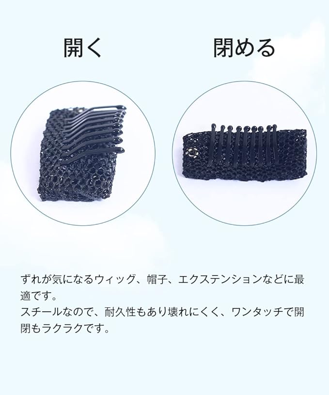 用途:ずれ気になる帽子、部分ウィッグ、フルウィッグ、エクステなどの商品にも付けます。どんな場合でも活躍できる万能なクリップです
