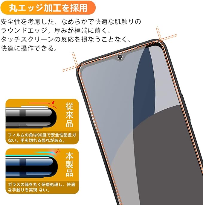 【9H強度&飛散防止】対応 AQUOS Wish5 強化ガラス 保護フィルムは日本旭硝子素材を採用します。 落下、スクラッチ、衝突、衝撃に高い耐久性があります 衝撃を最小限に抑えて画面の破損を抑え。カッターなどの鋭利なものを当たってもキズが付きにくくて高い強度を持ち表面硬度9Hが特徴です。特殊な飛散防止設計により、万一割れてしまった際にも飛散することなく、高い安全性を実現します。