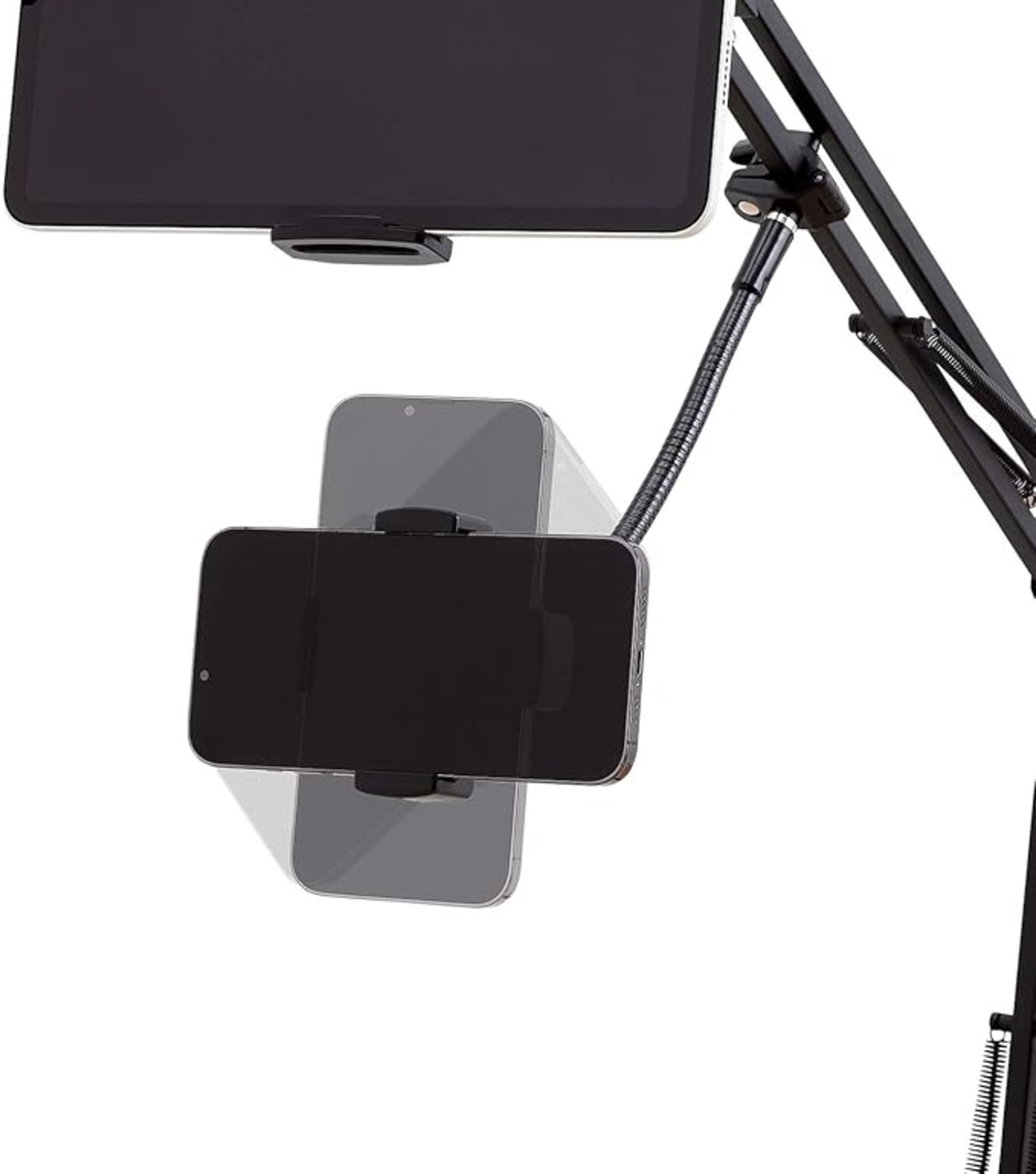 ■スマートフォンやタブレットを1台ずつ設置できるフレキシブルアームスタンドです。