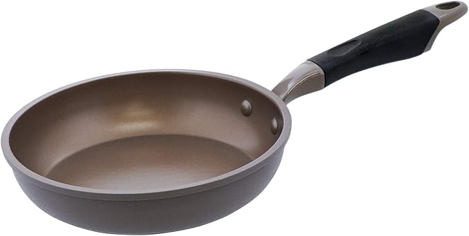 素材:本体/アルミニウム合金 オリジナル縁巻き深型形状、(エッグパンは除く)、内面/ダイキンEKダイヤモンドコートブラウンカラー(耐摩耗性試験30万回)、外面/耐熱焼付塗装、底面/ステンレス(SUS430) 0.4mm圧着、ハンドル/フェノール樹脂