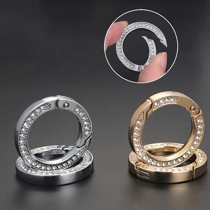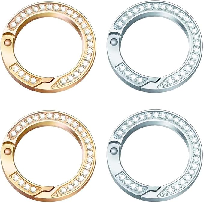 サムコス キーリング おしゃれ カラビナ ラインストーン キラキラ 丸型 カバン飾り 鍵飾り バッグチャーム DIY手作りアクセサリー ジュエリー作り デコキット 人気 レディース 金色+銀色 4個セット | etshop