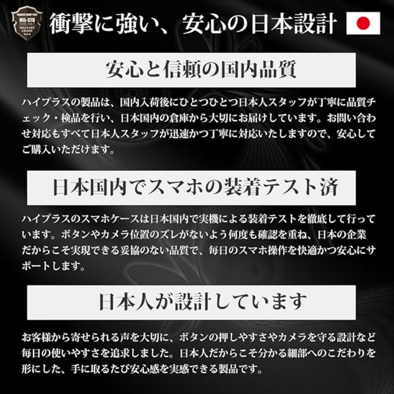 【スマホを落としてしまっても衝撃を最小限に抑えるケース】スマホが日常の生活に溶け込む現代で、落下などによるスマホの破損は販売台数に比例して増えている状況です。本ケースの角には落下時の衝撃を吸収するエアポケットを備えており、万が一スマホを落としてしまった場合でも、落下時のダメージを最小限に抑えることが可能となっており、その耐衝撃性能は第三者機関の試験による米軍MIL規格をクリアするほど高いことが証明されております。また、Xperia 1 III SO-51B SOG03専用にオリジナル設計しているためぴったりとフィットし、保護性能には欠かせないポイントとなっています。