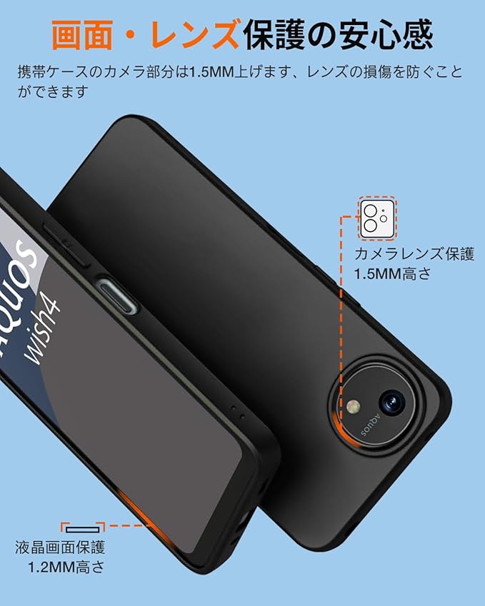 ☀【高品質TPU素材・超高耐衝撃性・製品の安心保証】 AQUOS wish4 SH-52E ケースに対応。高品質TPU素材を採用し、衝撃に強く耐久性に優れています。スマホを全方向からしっかりと保護します。超薄型で超軽量の設計で、表面には精密なサンディングプロセスが施されており、手触りが快適でケースの耐久性を向上させます。変色や変形がしにくく、装着感と耐久性を備えています。