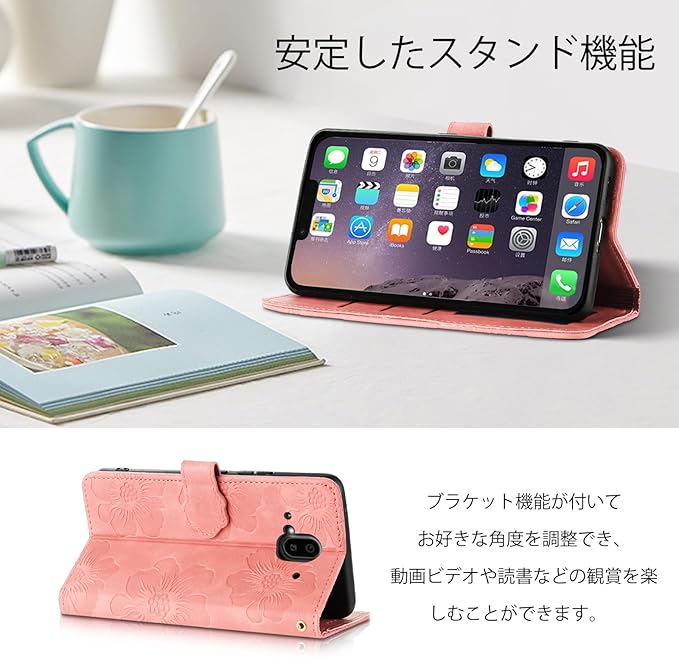 【カード収納とスタンド機能】:らくらくスマートフォン F-52B 財布型 カバーの内側に実用性のカード入れポケット 3、内側ポケット 1、カード類、現金、名刺、免許証入れなどを収納でき、通勤も通学にも楽々タイプです 。らくらくスマートフォン F-52B 手帳型ケースはブラケット機能が付いており、好きな角度に合わせて動画を見たり読んだりして、両手が解放さ、優れた利便性、長時間での新幹線、飛行機の中での暇つぶしに最適ですよね。