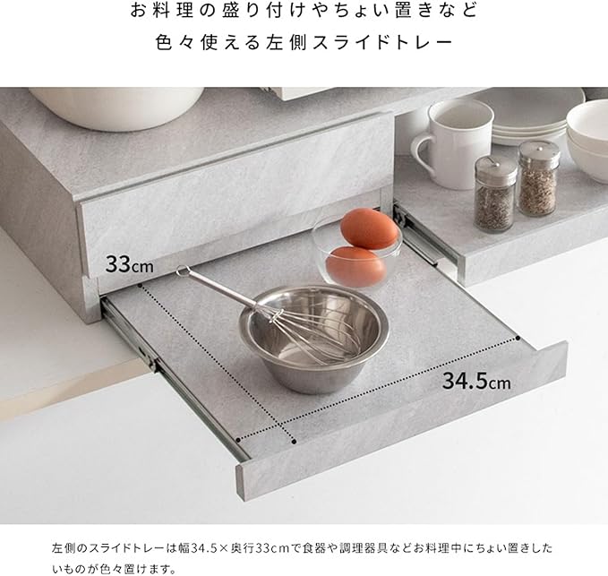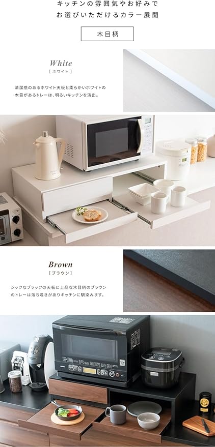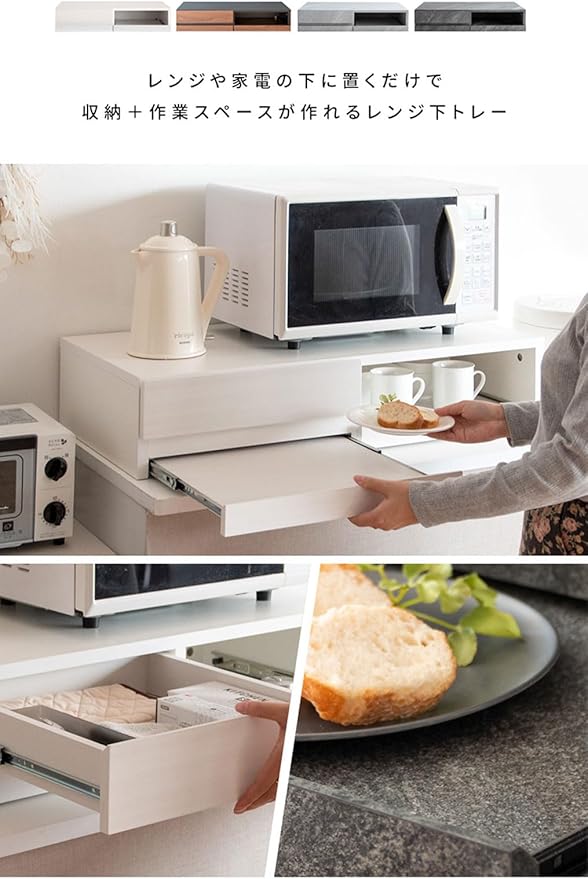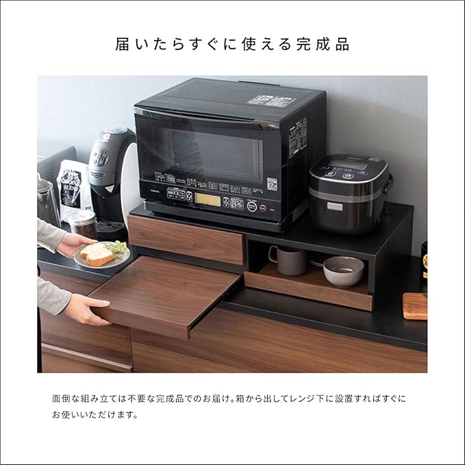 備考 完成品、スライドトレー耐荷重:各2kg ※必ず本体天板に10Kg以上の電子レンジ等を上に置いてご使用ください。