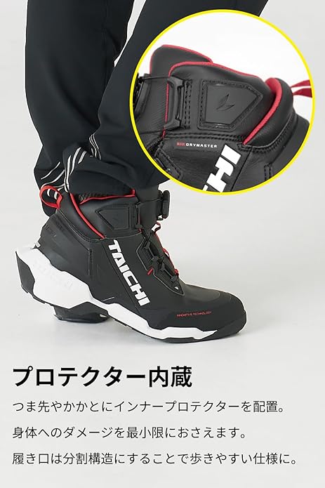 アッパーにはTAICHIオリジナルの防水・透湿素材"ドライマスター"を採用し、全天候での使用に対応。