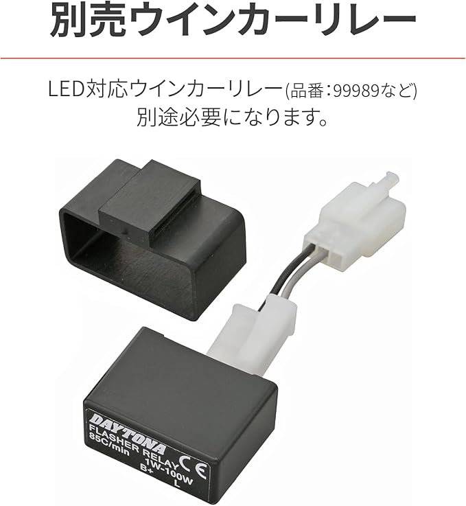 ※ デイトナのLED対応ウインカーリレーへの交換が必要です。純正がLEDウインカーであっても、リレー交換が必要となる場合があります。