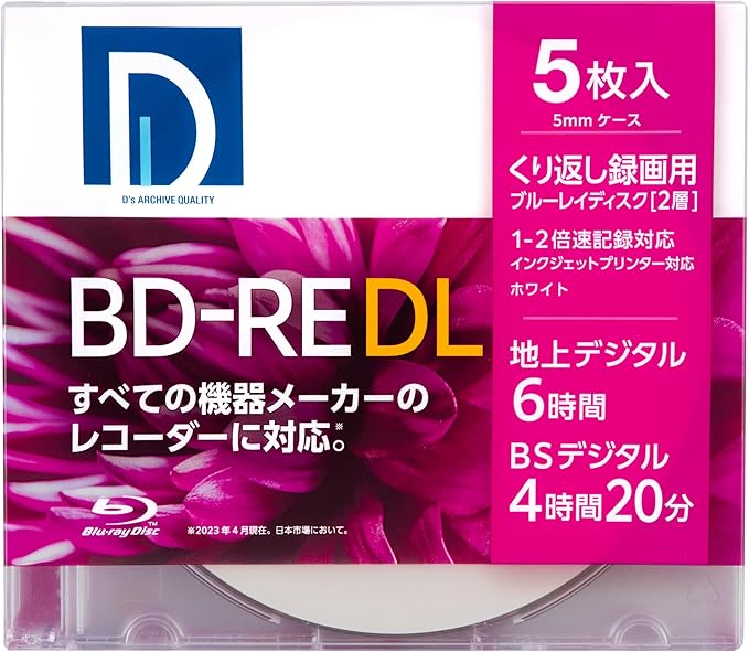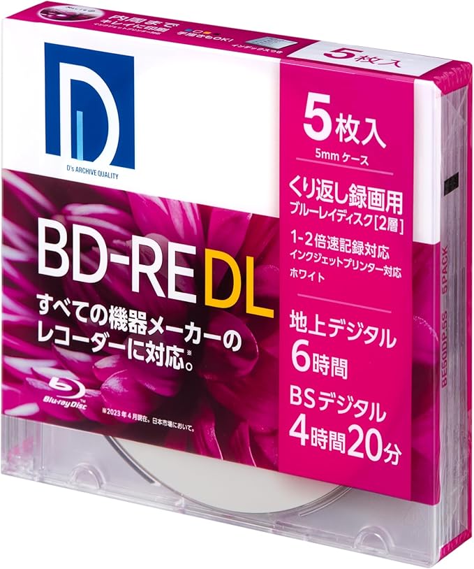 電響社 マクセル事業本部 録画用ブルーレイディスクBD-RE DL (1~2倍速対応) ワイドプリント対応 ホワイトレーベル 【記録容量 50GB/地デジ約360分 /5枚】BE50DP.5S | etshop