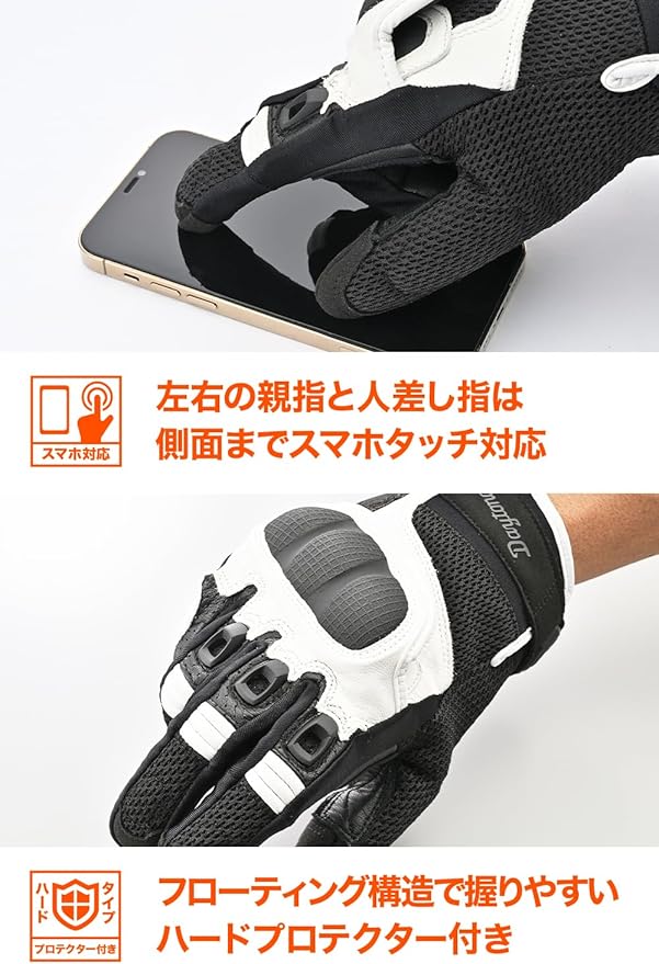 デイトナ(Daytona) バイク グローブ 夏 メッシュ 革(ヤギ革) ハードプロテクター スマホ対応 コンフォートエアフロー メッシュグローブ DG-008 ブラック/ホワイト Mサイズ 45906 | etshop