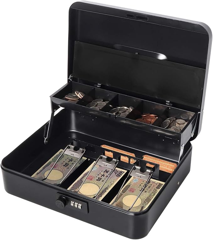 小銭や紙幣、小切手を保管するのに十分です。コンビニ、会社の財務あるいは日常の家庭での利用はすべて可能です。プレゼントとしてもいいです。