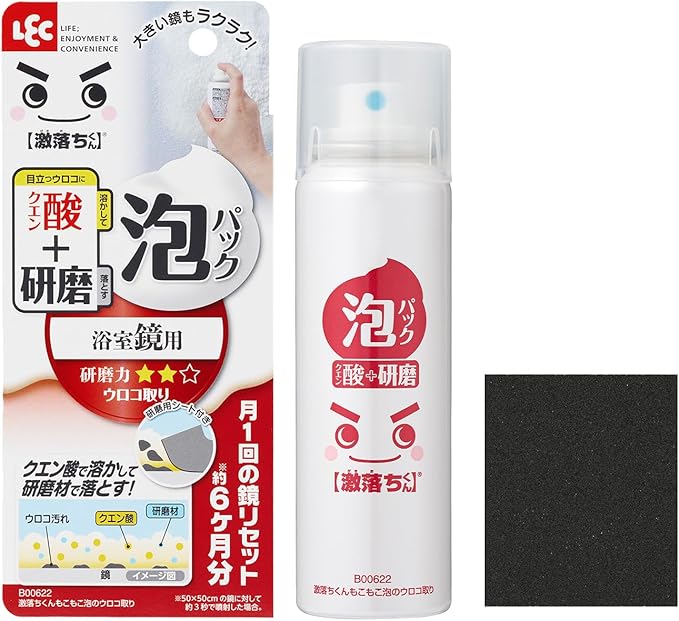 レック 激落ちくん 泡パック ウロコ取り (浴室鏡用) 研磨用シート付き/もこもこ泡パックで大きい鏡もラクラク