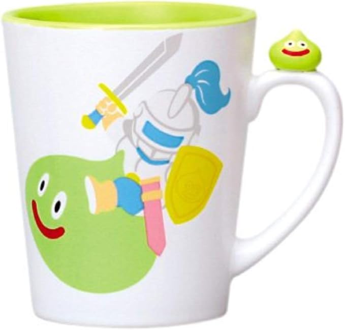 スライムナイト柄のマグカップ。取っ手の部分にはスライムナイトの人形がついています。