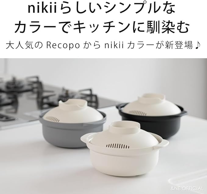 アンドエヌイー(&NE) レンジポット nikii ブラック 1.5L レンジ鍋 レコポ recopo 日本製 一人用 レシピ付き 小型 軽量 レンジ調理鍋 電子レンジ用 鍋 ラーメン パスタ NIM-205-BK | etshop