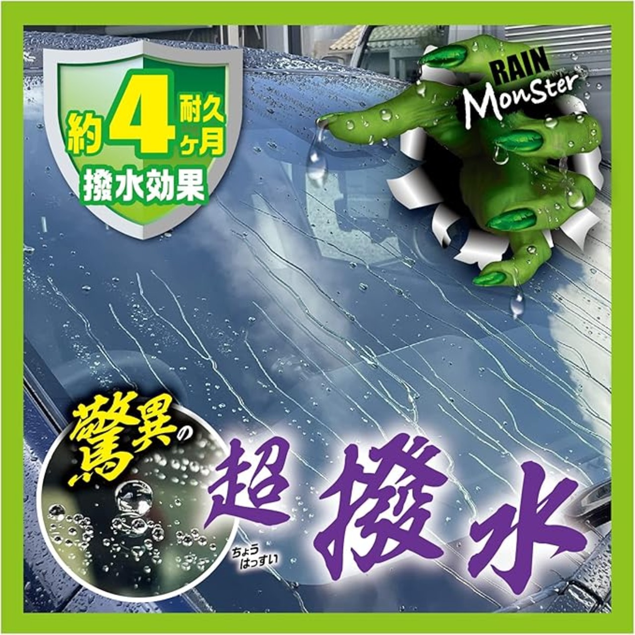 シリコーンとフッ素化合物を組み合わせたハイブリッド処方により約4ヶ月持続する超撥水を実現。