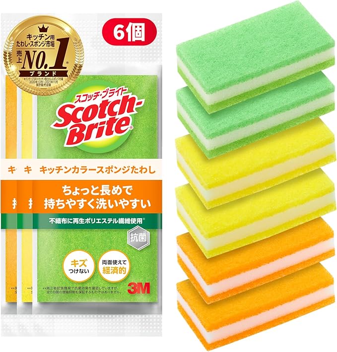 泡立ちのよいウレタンスポンジとナイロン・ポリエステル不織布の貼り合わせ。フレッシュフルーツカラーのちょっとロングで使いやすいスポンジです。