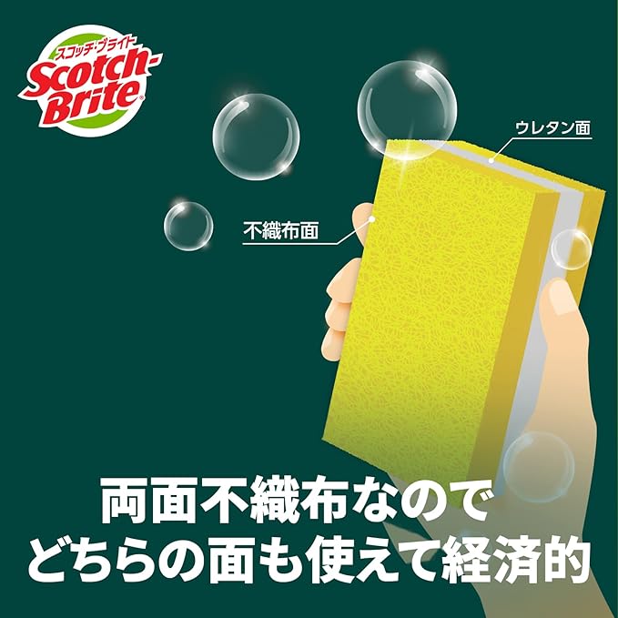 【両面ムダなく使える!】両面不織布で、ムダのないキッチンスポンジ。両面使えて、頻繫に買い替えなくて済むので経済的です。