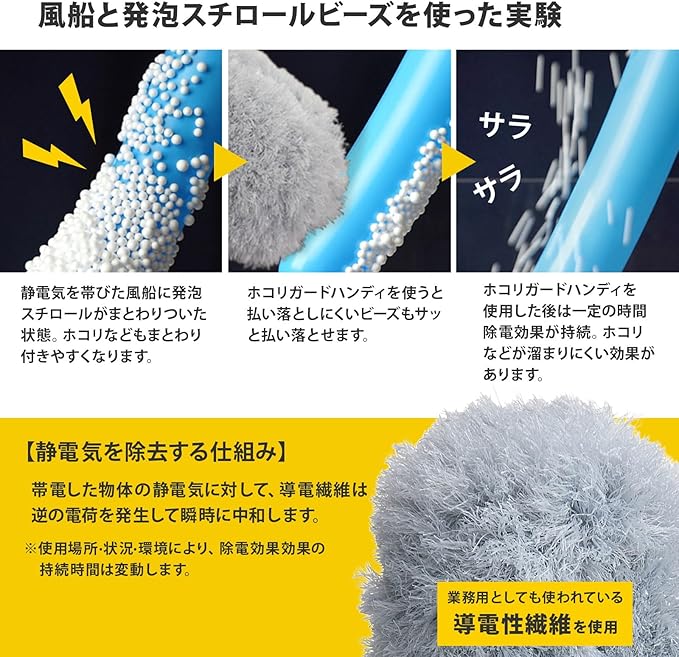 〇業務用で実績のある導電性繊維が静電気を中和(除去)し、ホコリの再付着を軽減。