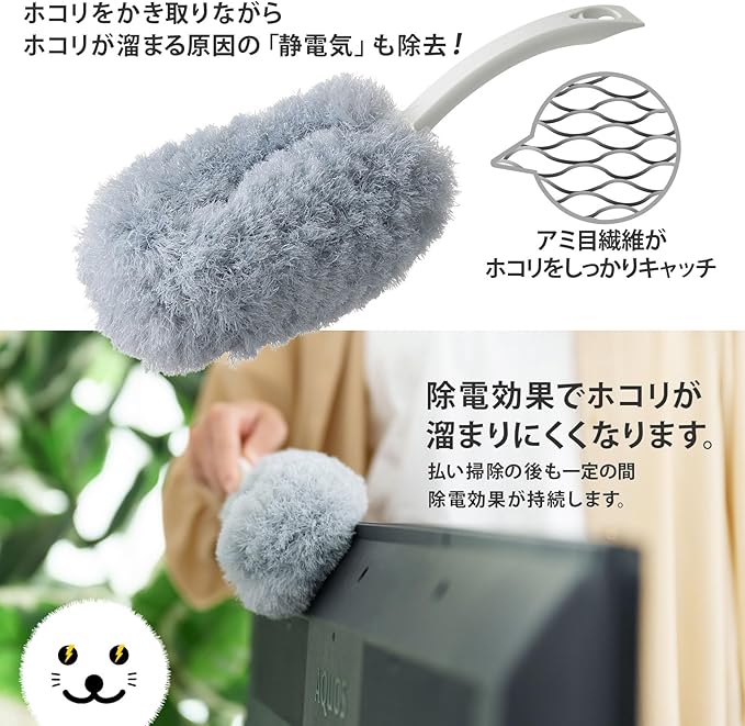 ホコリがたまる原因 静電気を除去、ホコリの再付着を軽減。